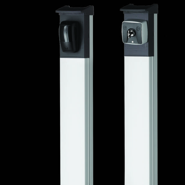 Potelets en aluminium pour la fixation de cellules photoélectriques, contacts à clé et autres accessoires. Barres palpeuses pour la sécurisation de toute installation.
