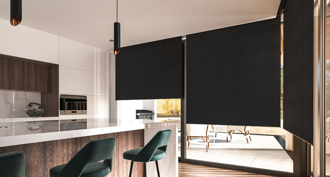 Il peut être construit avec un coffre pour protéger la toile et le moteur, ou avec des rails latéraux pour guider la toile pendant la descente. Pour plus de sécurité, ce rideau n’a qu’un seul rail en bas.