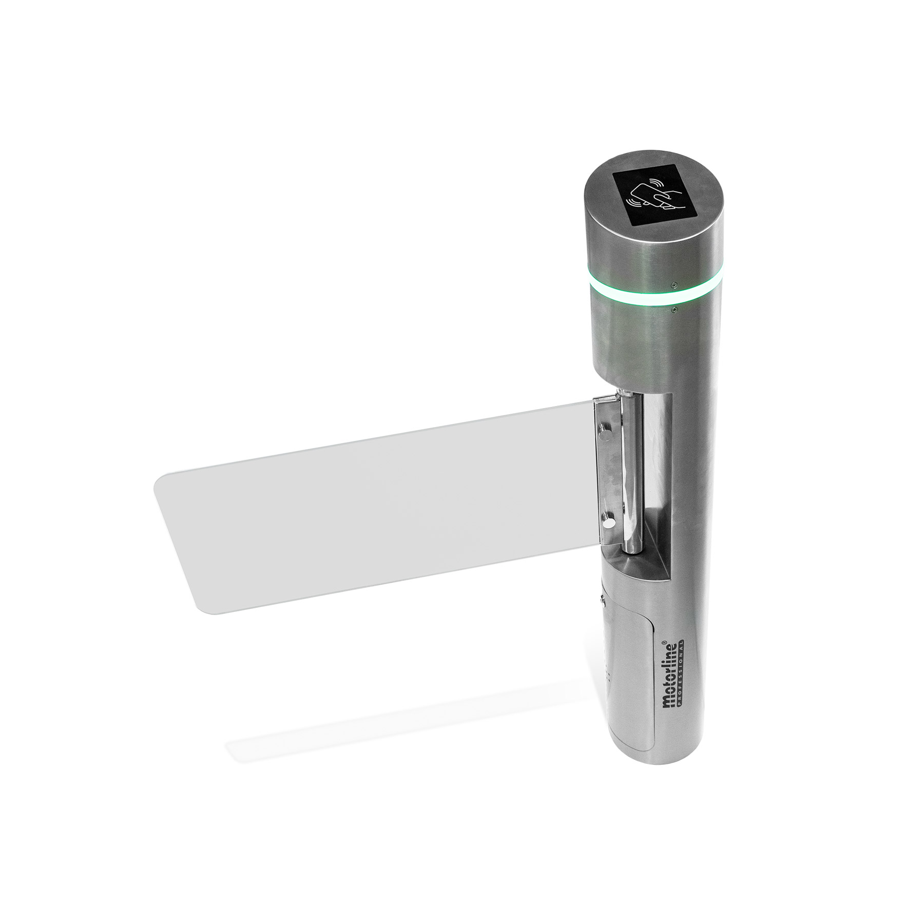 Portillon pivotant motorisé pour passage piéton aisé avec possibilité d’ouverture automatique dans les deux sens (bidirectionnel), lorsqu’un 2ème portillon est appliqué. Il comprend un système de sécurité afin qu’en cas de panne de courant le vantail se déverrouille automatiquement.